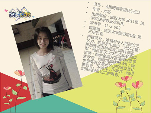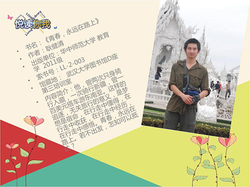 本期“悦读你我Living Library”,由武汉大学、华中师范大学图书馆强强联合,“馆际互借”,重磅推出“我为青春代言”系列。四部精彩绝伦的真人书,供您饱览青春胜卷。 聆听别人的故事,分享你对青春的感悟。